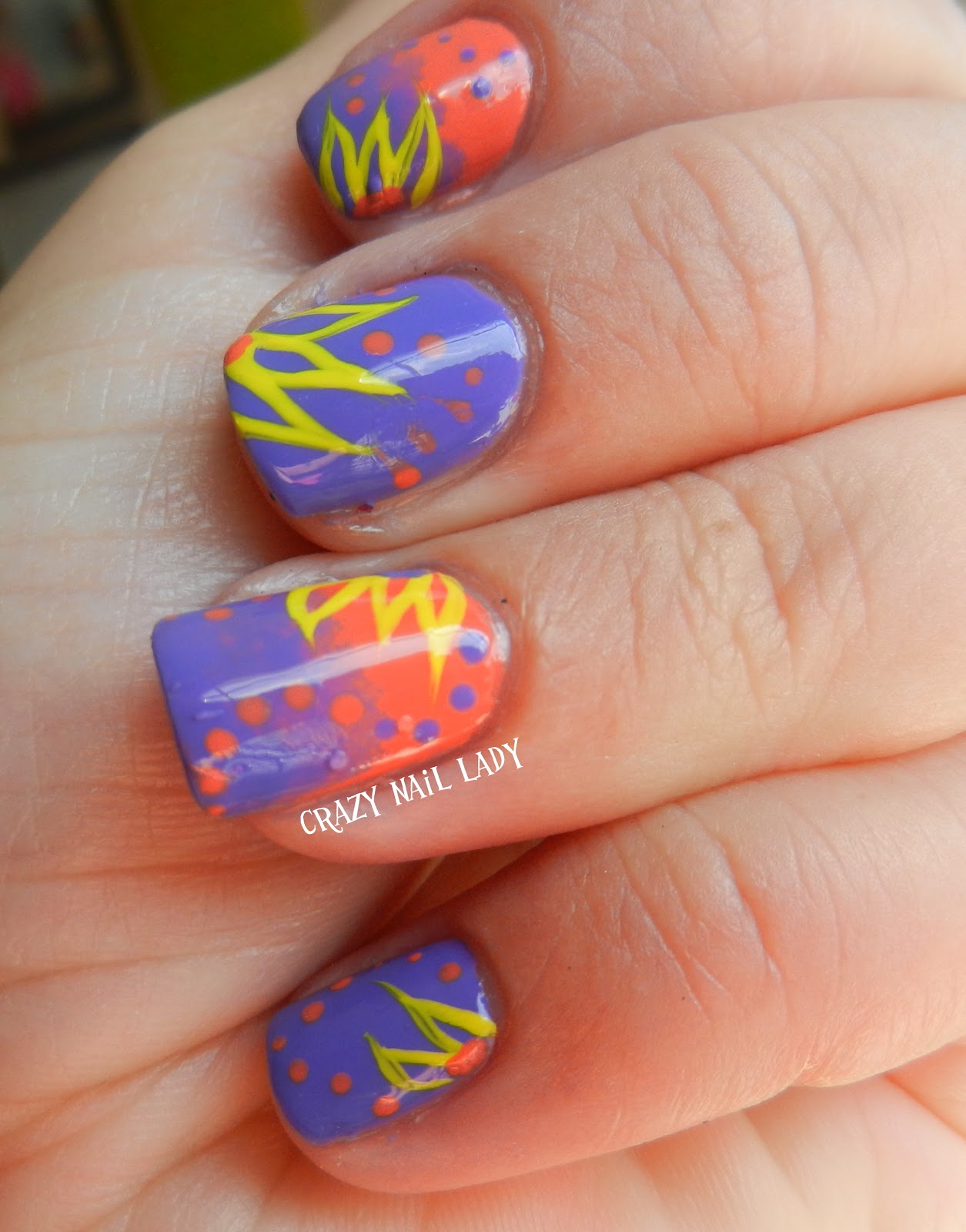 Sponged on colors in order-Sally Hansen Hard to Get, Spoiled Toad-ally Amazing, SH No Hard Feelings, Wet n Wild Tickled Pink
