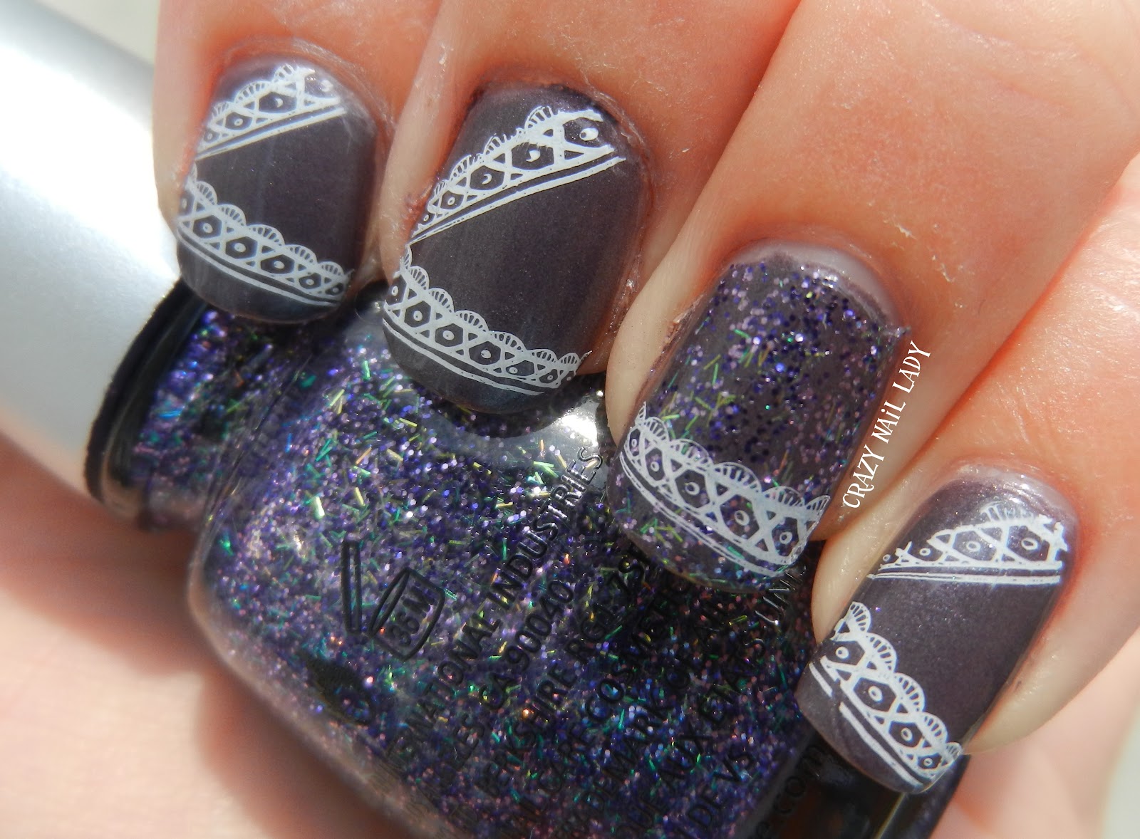 D & R Apothecary polish called Candied Violets for my base. I tried to go with the name of this polish for my inspiration....candy! yum. I even used a candy stamp on my accent nail, although it is really hard to see. I really love this manicure....almost enough to not want to take it off tomorrow! Naaah